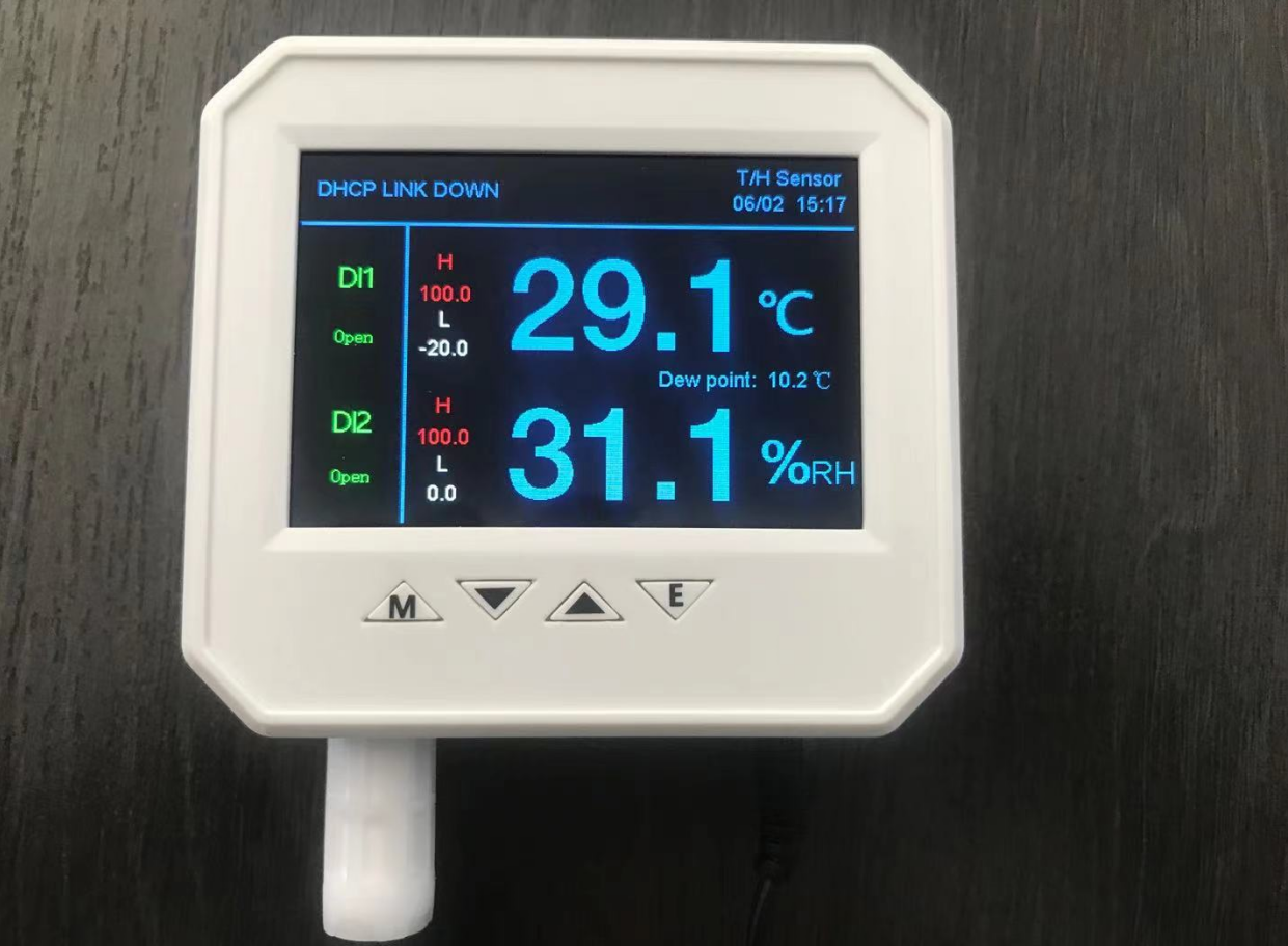 设备支持温湿度阈值报警、开关信号变化报警,报警信息将通过显示屏、声光、通讯协议、web 界面、 邮件等多种方式告警,设置可以通过web 界面或传感器按键进行,支持 DC12-48V 电源适配器供电 , 同时支持 POE 供电 ,不需使用 POE 分配器,设备支持 DC12V 对外供电 ,当使用此项功能时候 ,需使用高于 DC15V 电源为传感器供电。