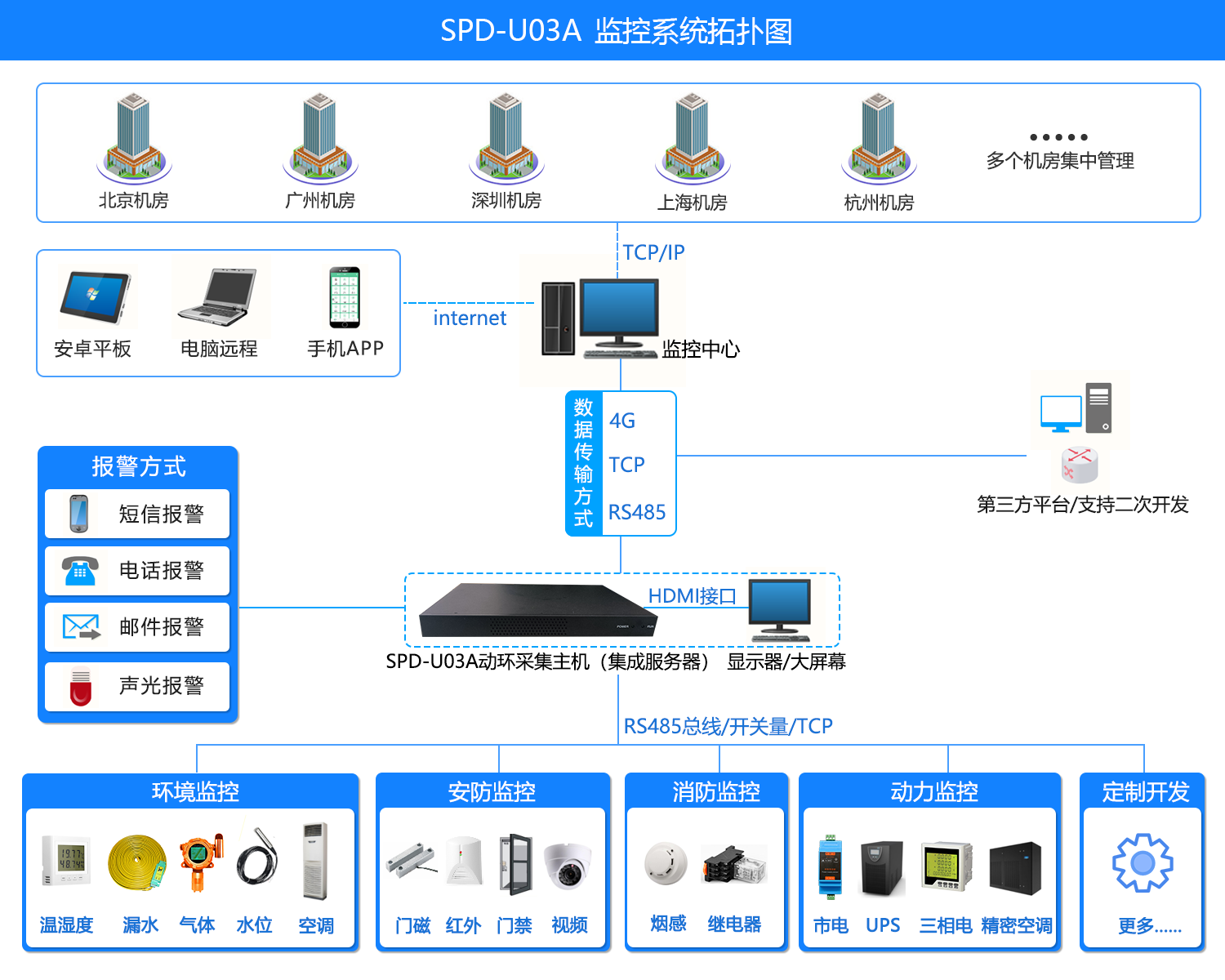 3) 系统具备多级组网能力以便组建更大的监控网络。